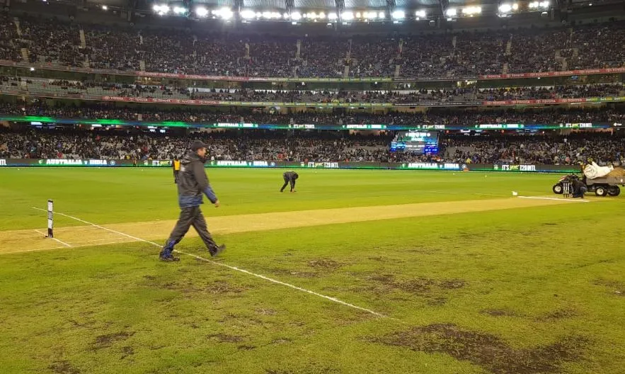 ऑस्ट्रेलिया और भारत के बीच खेला गया दूसरा टी20 मैच बारिश के कारण रद्द कर दिया गया है। मेलबर्न के मैदान पर पहले बल्लेबाजी करते हुए मेजबान ऑस्ट्रेलिया ने 19 ओवर में 7 विकेट के नुकसान पर 132 रन बनाए थे। जिसके बाद बारिश ने खलल डाल दी। बारिश रुकने के बाद डकवर्थ लुइस नियम अनुसार भारत को 19 ओवर में 137 रनों का लक्ष्य मिला।