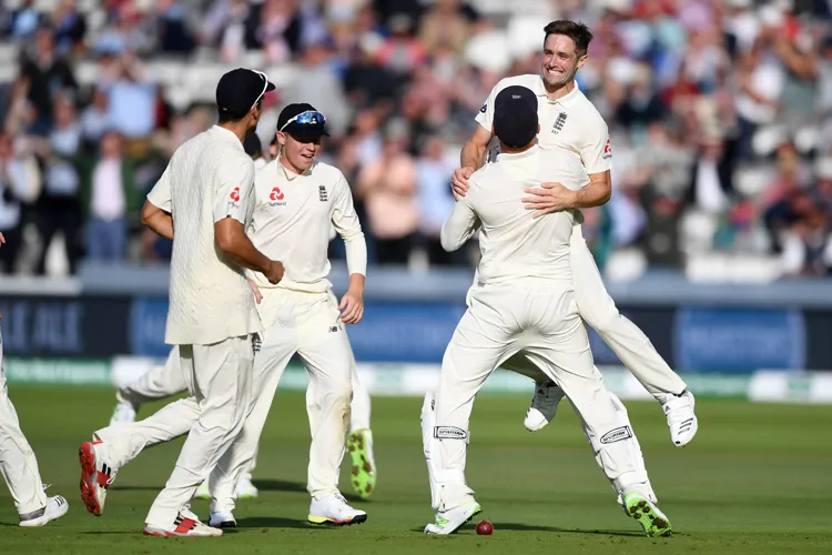 भारत और इंग्लैंड के बीच 5 मैचों की टेस्ट सीरीज का दूसरा मैच लॉर्ड्स में खेला जा रहा है। खेल के दूसरे दिन टीम इंडिया 107 रनों पर ही ढेर हो गई। भारत की तरफ से आर अश्विन ने सबसे ज्यादा 29 रनों की पारी खेली। वहीं इंग्लैंड की तरफ से जेम्स एंडरसन ने 5 विकेट झटके। पहले दिन का खेल बारिश के कारण बिना कोई गेंद फेंके रद्द करना पड़ा था। हालांकि दूसरे दिन भी बारिश ने पीछा नहीं छोड़ा। बारिश के चलते तीन बार खेला रोका गया। एक बार फिर से भारतीय बल्लेबाजी इंग्लैंड की तेज गेंदबाजी के सामने बुरी तरह फ्लॉप रही। इंग्लैंड ने शुरुआत से ही भारतीय बल्लेबाजों को टिकने का मौका नहीं दिया। ओपनर मुरली विजय पहले ही ओवर में बिना कोई रन बनाए एंडरसन की शानदार गेंद पर बोल्ड हो गए। विजय के जाने के बाद केएल राहुल भी ज्यादा देर तक नहीं टिक पाए 8 रन बनाकर एंडरसन का दूसरा शिकार बने। बारिश के बाद जब दूसरी बार खेल शुरू हुआ तो कोहली की गलती से चेतेश्वर पुजारा 1 रन बनाकर रन आउट हो गए।