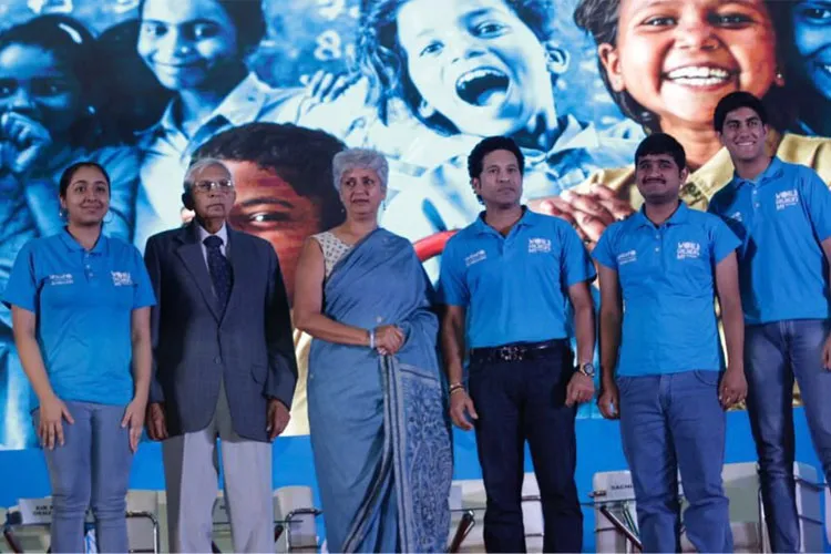 सचिन यूनीसेफ के गुडविल ब्रांड एम्बेसेडर हैं। बच्चों को संबोधित करने के बाद उन्होंने बच्चों के साथ एक प्रदर्शनी फुटबॉल मैच में भी हिस्सा लिया।