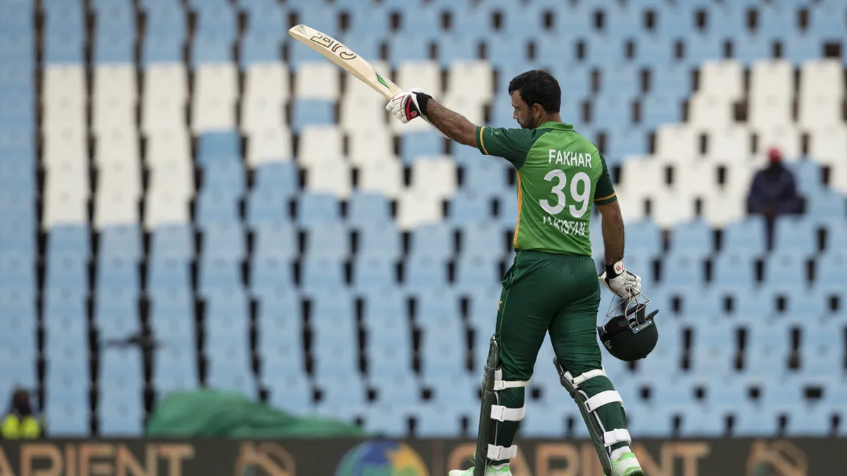 फखर जमां 104 गेंदों पर 101 रन की पारी खेलकर केशव महाराज का शिकार बने। उन्होंने अपनी इस पारी में 9 चौके और तीन छक्के लगाए।