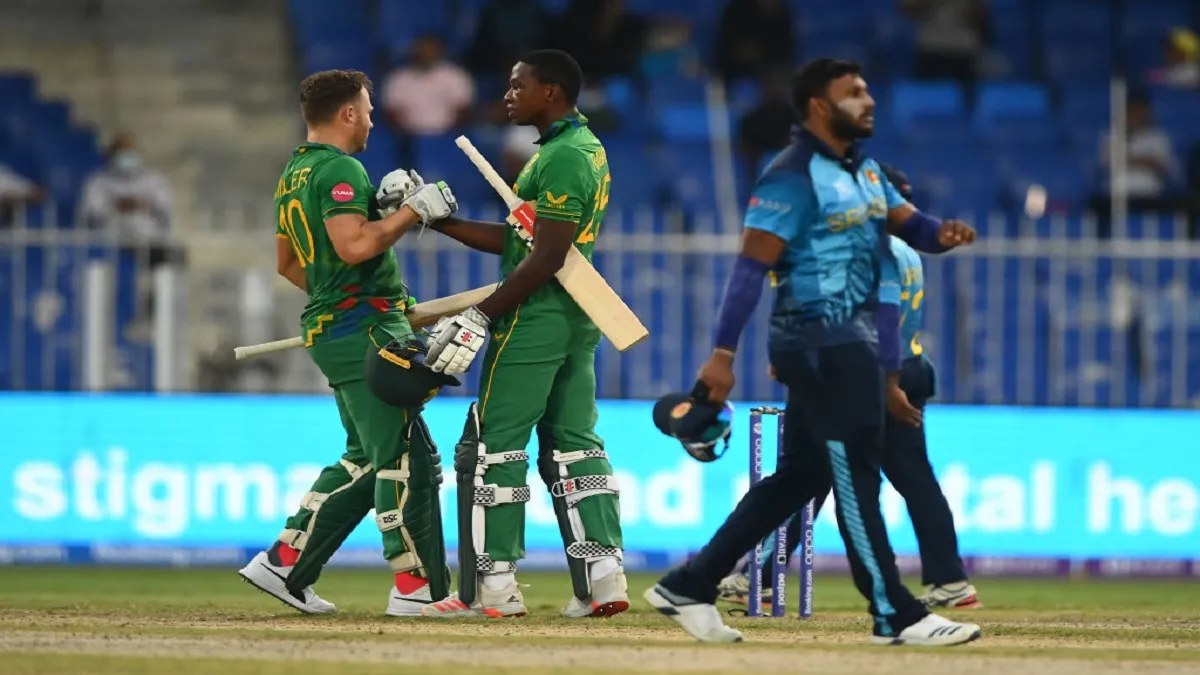 शारजाह| आईसीसी टी20 वर्ल्ड कप के सुपर 12 में शनिवार को यहां शारजाह क्रिकेट स्टेडियम में खेले गए मैच में दक्षिण अफ्रीका ने श्रीलंका को 4 विकेट से हरा दिया। टॉस हारकर पहले बल्लेबाजी करने आई श्रीलंका की टीम ने 143 रनों का लक्ष्य दिया था। रनों का पीछा करने उतरी दक्षिण अफ्रीका की टीम ने 20वें ओवर में ही लक्ष्य को पूरा कर दिया। कप्तान टेम्बा बावुमा (46) ने टीम की ओर से सबसे ज्यादा रन बनाए। टूर्नामेंट में दक्षिण अफ्रीका ने दूसरी जीत दर्ज की है। श्रीलंका की ओर से वानिंदु हसरंगा ने सबसे ज्यादा तीन विकेट अपने नाम किए। वहीं, दुष्मंथा चमीरा ने दो विकेट झटके।