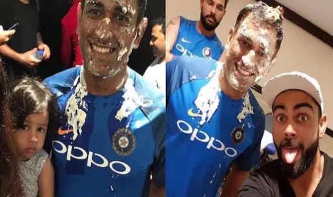 विराट कोहली, युवराज सिंह और टीम के अन्य खिलाड़ियों ने पहले बर्थ डे का गाना गाया और फिर धोनी से केक कटवाया। इसके बाद सब ने मिलकर धोनी के मुंह पर केक लगाया।