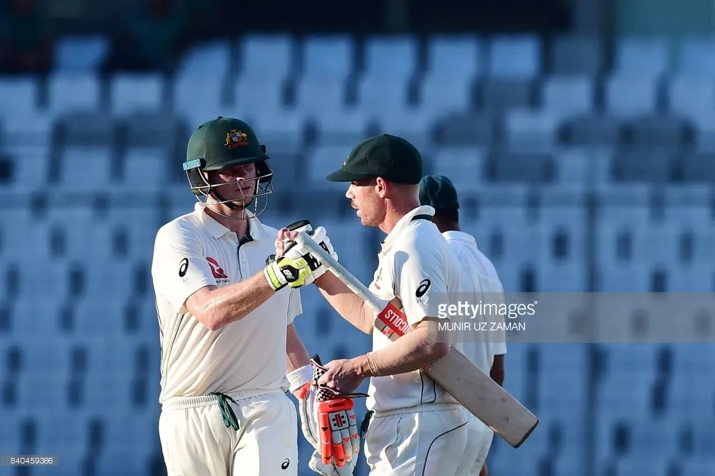 पिच टर्न ले रही है और ऐसे में आस्ट्रेलिया की शुरूआत अच्छी नहीं रही। उसने सलामी बल्लेबाज मैट रेनशॉ पांच और उस्मान ख्वाजा एक का विकेट जल्दी गंवा दिया लेकिन इसके बाद वार्नर और स्मिथ ने टीम को कोई झाटका नहीं लगने दिया। वार्नर ने आक्रामक अंदाज में बल्लेबाजी करके बांग्लादेशी स्पिनरों पर दबाव बनाया। उन्होंने अब तक 96 गेंदों का सामना करके 11 चौके और एक छक्का लगाया है।