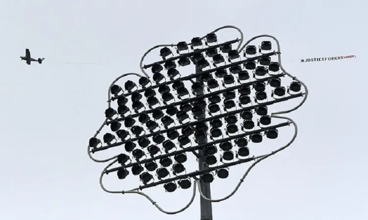 शनिवार को भारत और श्रीलंका के बीच मैच के दौरान हैंडिंग्ले के वायु क्षेत्र में ब्रेडफोर्ड से निजी विमान ने उड़ान भरी थी जिस पर 'इंडिया स्टॉप मॉब लिंचिंग' और 'जस्टिस फॉर कश्मीर' जैसे बैनर लगे थे।