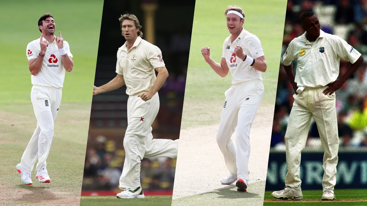 विश्व क्रिकेट में अब तक सिर्फ चार तेज गेंदबाजों ने ही टेस्ट क्रिकेट में 500 से ज्यादा विकेट चटकाए हैं। ये चार फास्ट बॉलर्स हैं- जेम्स एंडरसन, ग्लेन मैक्ग्रा, स्टुअर्ट ब्रॉड और कर्टनी वॉल्श। मैक्ग्रा और वॉल्श कई साल पहले इंटरनेशनल क्रिकेट से संन्यास ले चुके हैं। कंगारू लीजेंड मैक्ग्रा के खाते में 124 मैच में 563 विकेट हैं जबकि वॉल्श ने 132 मैच में 519 विकेट चटकाए हैं। इंग्लैंड के एंडरसन और ब्रॉड इंटरनेश्नल सर्किट में अभी भी एक्टिव हैं और ये दोनों दुनिया के सबसे सफल तेज गेंदबाज भी हैं।