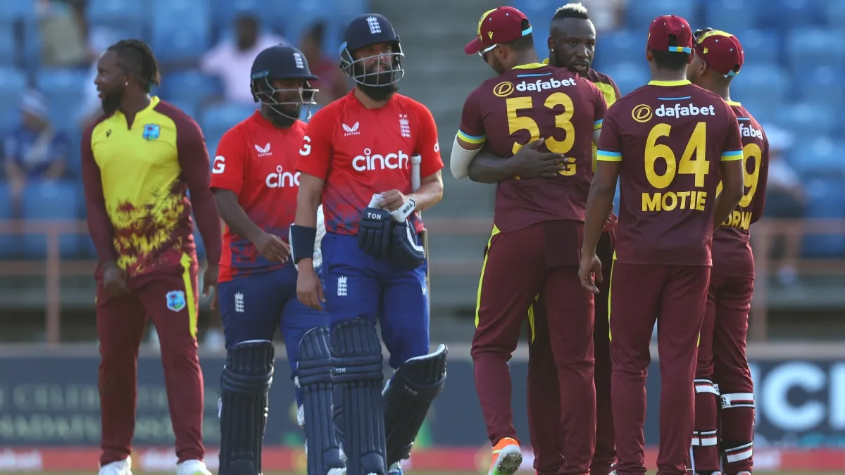 मैच की दूसरी पारी में इंग्लैंड को शुरुआत में ही झटका लग गया, कप्तान जोस बटलर पांच रन के निजी स्कोर पर अकील होसेन को अपना विकेट दे बैठे। विल जैक्स और फिल साल्ट ने दूसरे विकेट के लिए 46 रन जरूर जोड़े लेकिन उन्होंने इसके लिए 32 गेंदों का सामना किया। इसके बाद दोनों खिलाड़ी जल्दी-जल्दी आउट हो गए और इससे इंग्लिश ऑर्डर पर काफी दबाव आ गया। हालांकि सैम करन ने एक शानदार अर्धशतक बनाया, लेकिन वह अपनी टीम को मैच नहीं जिता सके। मोईन अली ने निचले क्रम में कुछ शॉट लगाए लेकिन इंग्लैंड के लिए तब तक बहुत देर हो चुकी थी और वे 166 रन पर ही सिमट गए। सीरीज में अभी और तीन मुकाबले बाकी हैं जहां इंग्लिश टीम वापसी करना चाहेगी, क्योंकि वनडे सीरीज में हार के बाद से ही उनकी टीम वापसी का तलाश में है।