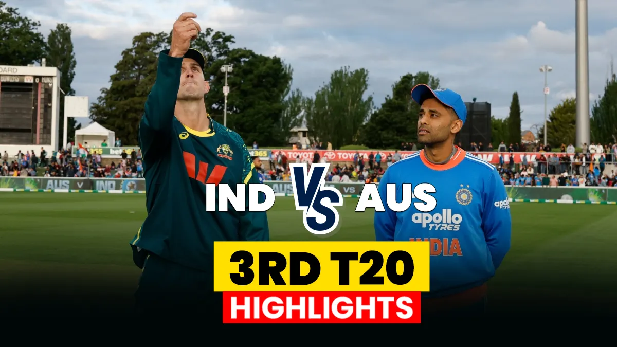 India vs Australia 3rd T20I: भारत और ऑस्ट्रेलिया के बीच टी20 सीरीज का तीसरा मुकाबला बेलेरिव ओवल मैदान पर खेला गया जिसे टीम इंडिया 5 विकेट से अपने नाम करने में कामयाब रही। इसी के साथ अब ये सीरीज 1-1 की बराबरी पर आ गई है। इस मैच में भारतीय टीम के कप्तान सूर्यकुमार यादव ने टॉस जीतकर पहले गेंदबाजी करने का फैसला लिया था, जिसके बाद मेजबान ऑस्ट्रेलियाई टीम ने पहले बल्लेबाजी करते हुए 20 ओवर्स में 6 विकेट के नुकसान पर 186 रनों का स्कोर बनाया है। ऑस्ट्रेलिया की तरफ से टिम डेविड ने 74 रनों की तो वहीं मार्कस स्टोइनिस के बल्ले से 64 रनों की बेहतरीन पारी देखने को मिली। भारतीय टीम की तरफ से गेंदबाजी में अर्शदीप सिंह ने 3 विकेट हासिल किए तो वहीं वरुण चक्रवर्ती 2 जबकि शिवम दुबे एक विकेट लेने में कामयाब रहे।
