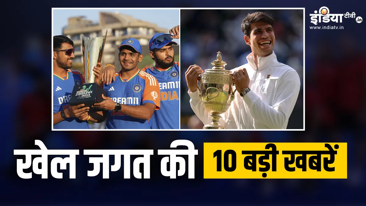 Sports Top 10: हरारे के मैदान पर खेले गए भारत और जिम्बाब्वे के बीच 5 मैचों की टी20 सीरीज के 5वें मुकाबले को टीम इंडिया ने 42 रनों से एकतरफा अपने नाम करने के साथ इस सीरीज को भी 4-1 से जीतने में सफलता हासिल की। भारतीय टीम ने सीरीज के आखिरी मैच में पहले बल्लेबाजी करते हुए 20 ओवर्स में 167 रनों का स्कोर बनाया था, जिसके बाद टारगेट का पीछा करते हुए जिम्बाब्वे की टीम 125 का स्कोर बनाकर सिमट गई। वहीं विंबलडन के पुरुष एकल के फाइनल मुकाबले में कार्लोस अल्काराज ने नोवाक जोकोविच को मात देने के साथ अपने करियर का चौथा ग्रैंडस्लैम खिताब जीता।