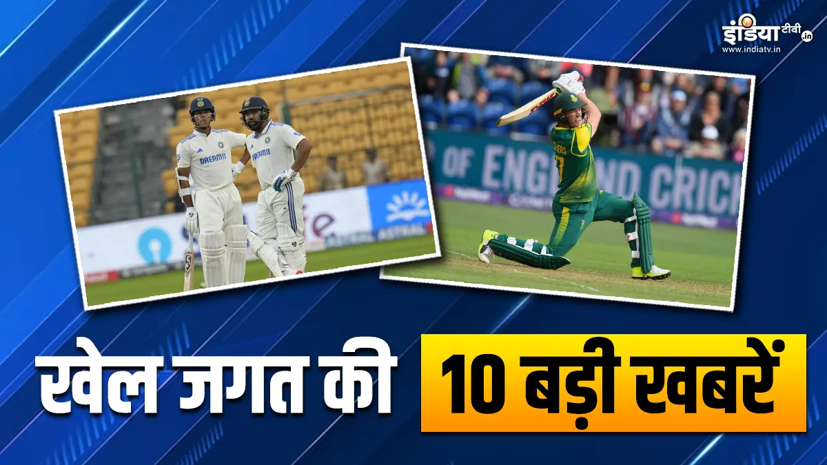 Sports Top 10: भारत और न्यूजीलैंड के बीच तीन टेस्ट मैचों की सीरीज का पहला मुकाबला बेंगलुरु के एम. चिन्नास्वामी स्टेडियम में खेला जा रहा है, जिसमें पहले दिन का पूरा खेल बारिश होने की वजह से रद्द कर दिया गया था। वहीं दूसरे दिन के खेल में टीम इंडिया के कप्तान रोहित शर्मा ने टॉस जीतने के बाद पहले बल्लेबाजी करने का फैसला लिया, जिसमें प्लेइंग 11 में 2 बड़े बदलाव भी देखने को मिले। इसके अलावा आईसीसी ने अपने हॉल ऑफ फेम में तीन दिग्गज प्लेयर्स को शामिल किया है जिसमें एक नाम साउथ अफ्रीका टीम के पूर्व खिलाड़ी एबी डिविलियर्स का भी शामिल है, इसके अलावा एलिस्टर कुक और नीतू डेविड को भी जगह मिली है।