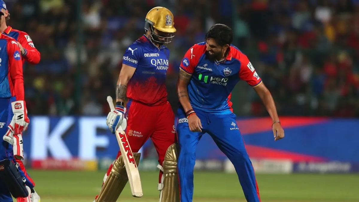 Virat Kohli Ishant Sharma IPL 2024: रॉयल चैलेंजर्स बेंगलुरु और दिल्ली कैपिटल्स के बीच खेले गए मैच में विराट कोहली और ईशांत शर्मा के बीच खूब मस्ती-मजाक देखने को मिला। ये दोनों खिलाड़ी एक-दूसरे को मजाकिया अंदाज में स्लेज करते हुए नजर आए। वहीं, इस मैच के बाद दिल्ली कैपिटल्स की टीम ने सोशल मीडिया पर एक वीडियो शेयर किया जो काफी वायरल हो रहा है। बता दें ये दोनों खिलाड़ी वेस्ट दिल्ली से आते हैं और इन्होंने अपने करियर की शुरुआत में काफी क्रिकेट एक साथ खेला है।