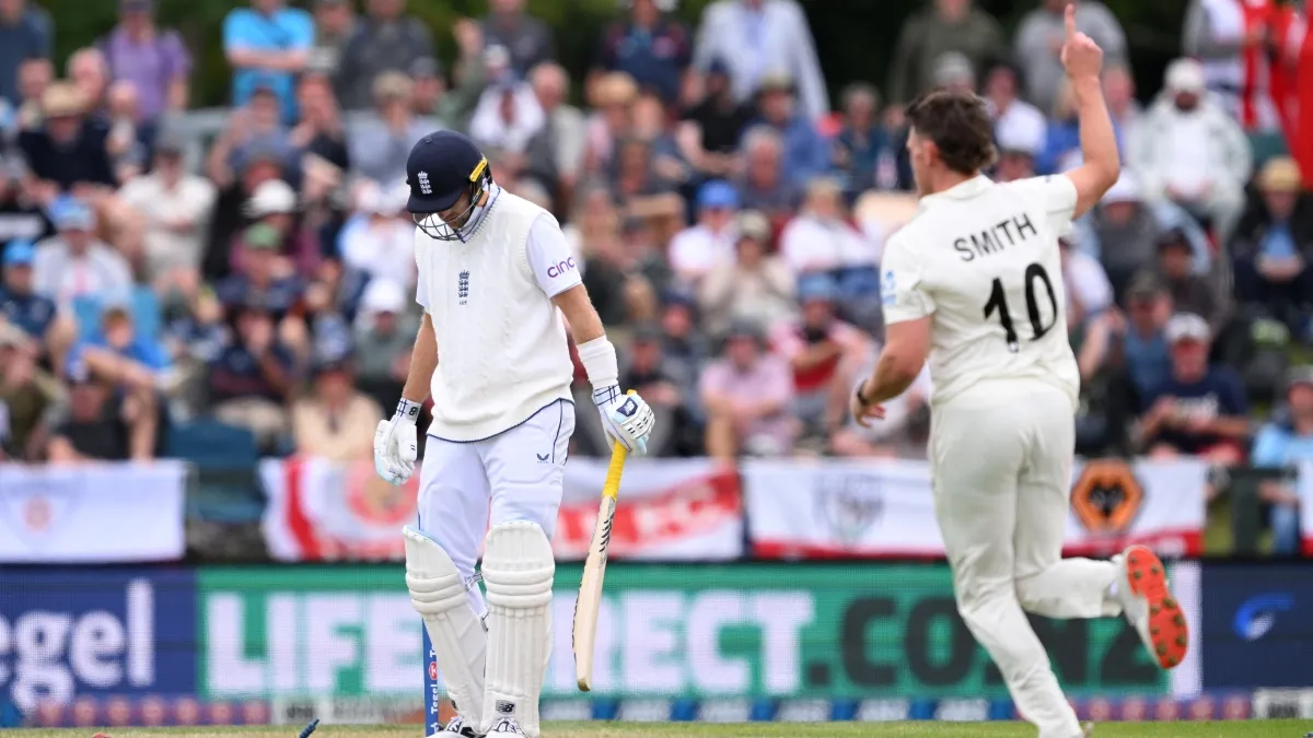 सलामी बल्लेबाज जैक कॉली अपना खाता भी नहीं खोल सके और चौथे ओवर में मैट हेनरी का शिकार बने। वहीं, डेब्यूटेंट ऑलराउंडर जैकब बेथेल अपने पहले ही मैच में फेल हो गए। बेथेल ने सिर्फ 10 रन बनाए। इसके बाद बल्लेबाजी करने के लिए नंबर-1 टेस्ट बल्लेबाज जो रूट मैदान पर उतरे लेकिन बिना खाता खोले पवेलियन लौट गए। रूट के पास अपने 150वें टेस्ट मैच में बड़ी पारी खेलने का शानदार मौका था लेकिन वह सिर्फ चार गेंदों का सामना कर सके और नाथन स्मिथ की गेंद पर बोल्ड हो गए। इस तरह जो रूट के नाम शर्मनाक रिकॉर्ड दर्ज हो गया।