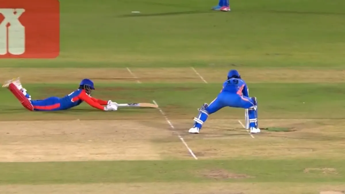 इस मुकाबले में दिल्ली कैपिटल्स की टीम को 165 रनों का टारगेट मिला था, जिसका पीछा करते हुए उन्होंने 19.5 ओवर्स में 163 रन बना लिए थे। आखिरी गेंद पर बल्लेबाजी कर रही अरुंधती रेड्डी ने हवा में शॉट तो खेला लेकिन वह सिर्फ 30 गज ही पार कर सका जिसपर उन्होंने 2 रन लेने का प्रयास किया। दूसरा रन पूरा करने के दौरान जब रेड्डी वापस अपनी क्रीज के अंदर पहुंच रहीं थी तो उसी समय मुंबई इंडियंस की विकेटकीपर ने थ्रो पकड़ने के साथ विकेट गिरा दिए, जिसके बाद ये तीसरे अंपायर के पास ये पूरा फैसला गया। थर्ड अंपायर ने कई बार रिप्ले देखने के बाद जैसे ही नॉट आउट करार दिया सभी हैरान रह गए। दरअसल जब विकेटकीपर ने विकेट पर गेंद लगाई तो अरुंधती का बल्ला क्रीज से थोड़ा बाहर था और LED बेल्स हटने की वजह से स्टंप की लाइट भी जल गई थी, लेकिन जब अगला फ्रेम देखा गया तो बेल्स विकेट से पूरी तरह हट तो गईं लेकिन रेड्डी का बल्ला क्रीज के थोड़ा अंदर आ गया था, जिसके बाद अब इस फैसले को लेकर विवाद भी देखने को मिल रहा है।