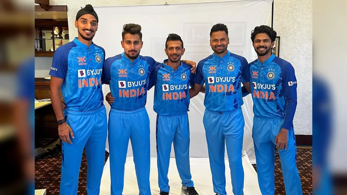दरअसल श्रीलंका के खिलाफ 3 जनवरी को मुंबई के वानखेड़े स्टेडियम में होने वाले पहले टी20 मैच की पूर्व संध्या पर भारतीय स्पिनर चहल ने अपने इंस्टाग्राम अकाउंट पर एक ग्रुप तस्वीर शेयर की। उनकी इस तस्वीर में उमरान मलिक, ऋतुराज गायकवाड, अर्शदीप सिंह और पहली बार टीम में शामिल किए गए मुकेश कुमार भी नजर आ रहे हैं। चहल ने अपने इस फोटो के कैप्शन में लिखा फैंटास्टिक फाइव, टी20 सीरीज के लिए तैयार। लेकिन देखते-देखते खिलाड़ियों से ज्यादा चर्चा उनकी जर्सी की होने लगी और फोटो भी सोशल मीडिया पर वायरल हो गई।