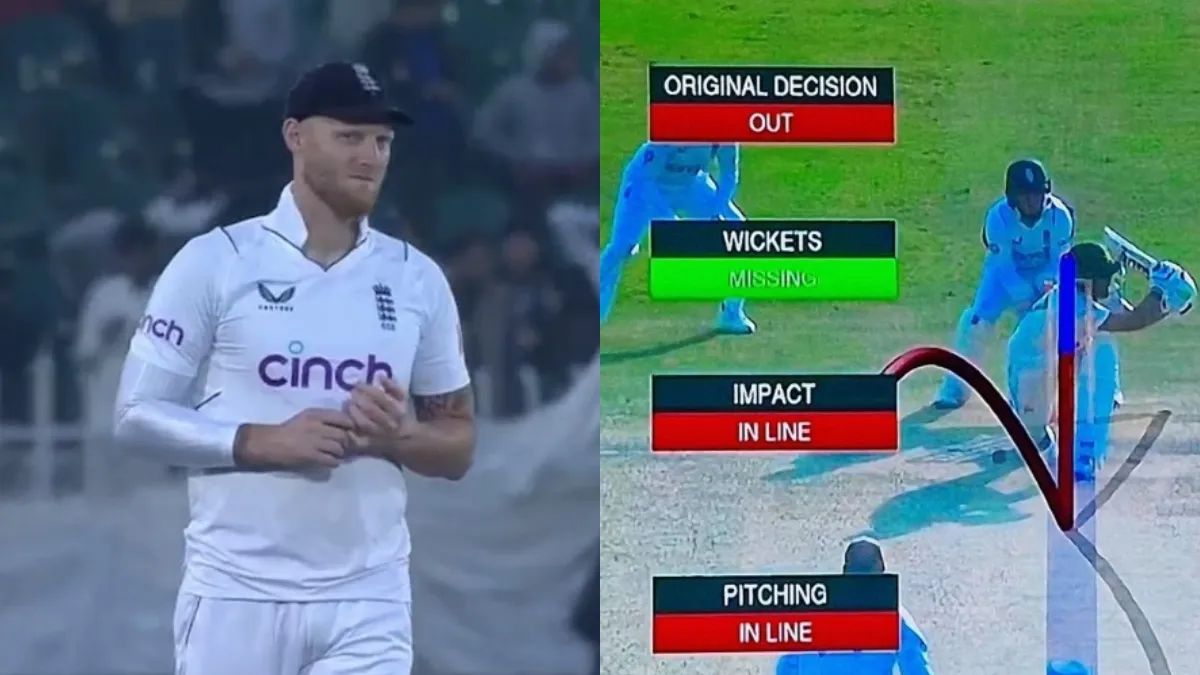 पांचवें दिन चायकाल से पहले जैक लीच पाकिस्तानी पारी का 76वां ओवर फेंक रहे थे। तभी इस ओवर की आखिरी गेंद पर आगा सलमान ने एक स्वीप शॉट खेलने की कोशिश की। लेकिन गेंद सीधा पाकिस्तानी बल्लेबाज के पैड पर जाकर लगी। इंग्लैंड की टीम ने जोरदार अपील की और अंपायर ने उंगली भी उठा थी। तभी सलमान ने डीआरएस रिव्यू की मांग की। फैसला थर्ड अंपायर के पास गया। रीप्ले में देखने को मिला कि गेंद एकदम सीधी है और पाकिस्तानी बल्लेबाज ने भी उम्मीद छोड़ ही दी थी। लेकिन तभी देखने को मिला कि गेंद स्टंप्स के ऊपर से जा रही और सलमान का विकेट बच गया।