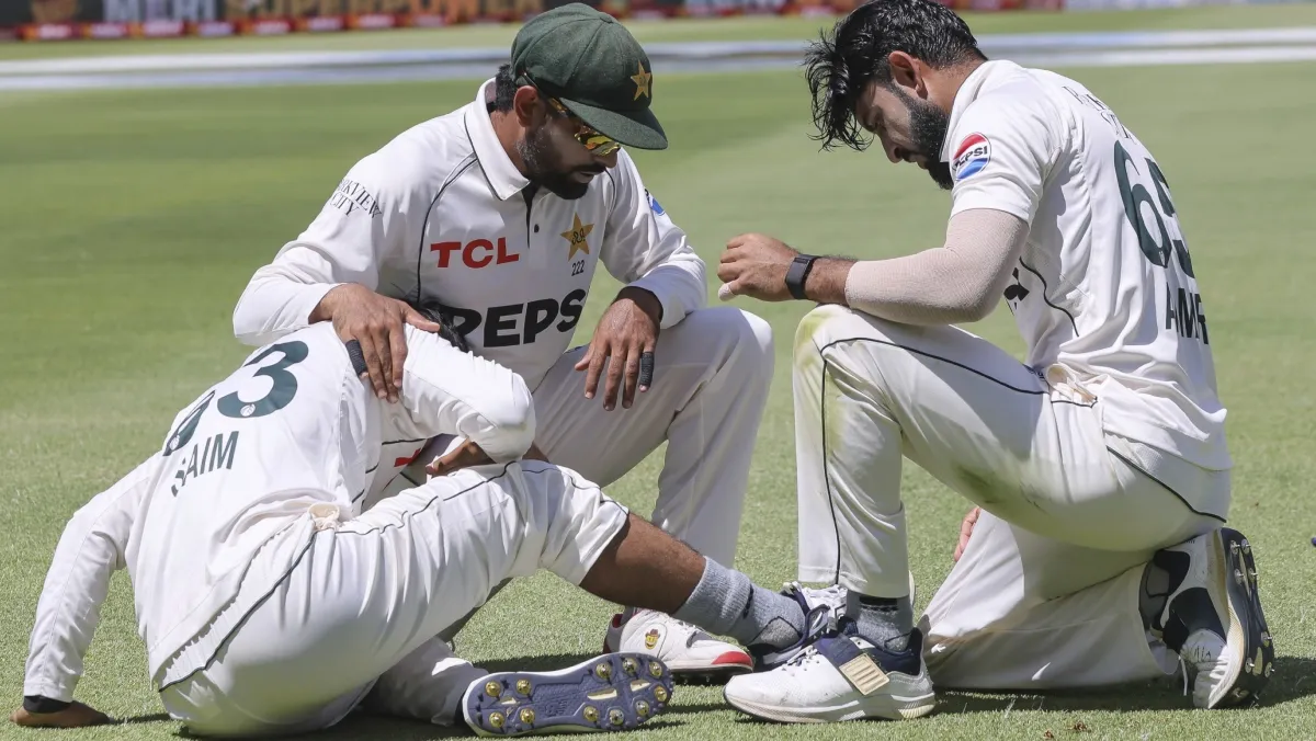 SA vs PAK Cape Town Test Match: पाकिस्तान की टीम अभी साउथ अफ्रीका के दौरे पर है जहां पर वह केपटाउन के मैदान पर 3 जनवरी से दो मैचों की टेस्ट सीरीज का दूसरा मुकाबला खेल रही है। इस मैच में मेजबान साउथ अफ्रीका ने टॉस जीतने के बाद पहले बल्लेबाजी करने का फैसला लिया है, जिसमें पाकिस्तानी टीम को मैच शुरू होने के साथ फील्डिंग के दौरान एक बड़ा झटका सैम अयूब के रूप में लगा जो अपने टखने को चोटिल कर बैठे, जिसके चलते उन्हें मैदान से स्ट्रेचर की मदद से बाहर लेकर जाया गया। अयूब का अब इस मुकाबले में खेलना काफी मुश्किल लग रहा है जो पाकिस्तान टीम के एक बड़ा झटका भी है क्योंकि अब तक इस दौरे पर उनका बल्ले से प्रदर्शन काफी शानदार देखने को मिला है।