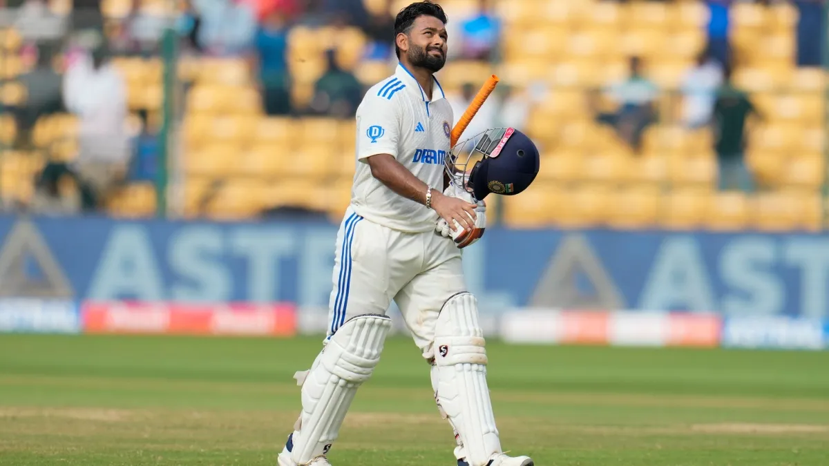 Rishabh Pant: बेंगलुरु में भारत और न्यूजीलैंड के बीच पहला टेस्ट मैच खेला जा रहा है जिसका आज चौथा दिन है। पहली पारी में 46 रन पर ढेर होने के बाद टीम इंडिया ने अपनी दूसरी पारी में शानदार प्रदर्शन किया। सरफराज खान के शानदार शतक और ऋषभ पंत की दमदार पारी की बदौलत टीम इंडिया ने चौथे दिन लंच तक 3 विकेट खोकर 343 रन स्कोरबोर्ड पर लगा दिए थे। लंच तक सरफराज 125 रन और ऋषभ पंत 53 रन बनाकर खेल रहे थे। इसके बाद बारिश ने मैच में खलल डाला जिससे दूसरे सेशन का खेल देरी से शुरु हुआ। इसके बाद सरफराज 150 रन के स्कोर पर टिम साउदी का शिकार बन गए। सरफराज के पवेलियन लौटने के बाद ऋषभ पंत ने केएल राहुल के साथ मिलकर पारी को संभाला और अपने शतक के करीब पहुंच गए।
