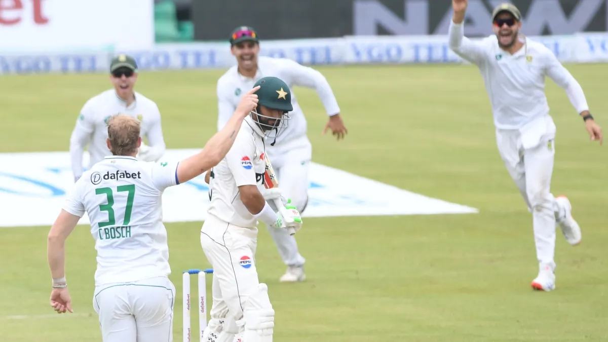 सलामी जोड़ी के पवेलियन लौटने के बाद भी विकेट गिरने का सिलसिला जारी रहा। खराब फॉर्म से गुजर रहे पाकिस्तान के धाकड़ बल्लेबाज और पूर्व कप्तान बाबर आजम ने एक बार फिर निराश किया। बाबर सिर्फ 4 रन बनाकर डेन पीटरसन का शिकार बने। इसके बाद सऊद शकील भी 14 रन बनाकर 19वें ओवर में चलते बने। इस तरह पाकिस्तान ने 56 रन के भीतर अपने 4 विकेट खो दिए। इस दौरान साउथ अफ्रीका के एक गेंदबाज ने अपने पहले ही टेस्ट में विकेट लेकर नया इतिहास रच दिया।