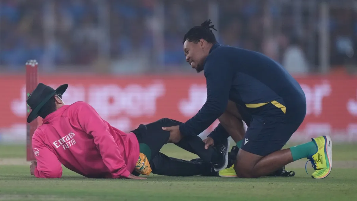 साउथ अफ्रीका के खिलाफ भारतीय टीम जब पहले बल्लेबाजी कर रही थी तो उसमें 9वें ओवर के दौरान जो अफ्रीकी टीम की तरफ से डोनोवन फरेरा फेंक रहे थे, उनकी ऑफ स्टम्प के आसपास फुल लेंथ गेंद पर संजू सैमसन ने जोर से सीधा शॉट मारा, जिस पर फरेरा ने कैच लेने का प्रयास किया लेकिन गेंद उनके हाथों से फिसल गई और सीधे जाकर अंपायर रोहन पंडित के घुटने पर जा लगी। गेंद लगते ही रोहन पंडित दर्द से कराहते हुए कुछ कदम चले और फिर नीचे बैठ गए। इसके बाद तुरंत ही मैदान पर साउथ अफ्रीकी टीम के फीजियो जहां उन्हें देखने के लिए पहुंचे तो टीम इंडिया के फीजियो भी मैदान पर आ गए, जिसके चलते मुकाबले को थोड़ी देर के लिए रोकना पड़ा। हालांकि बाद में रोहित पंडित के घुटने पर जब मैजिक स्प्रे लगाया तो उसके बाद उन्हें काफी राहत मिली और मुकाबला फिर शुरू किया गया।