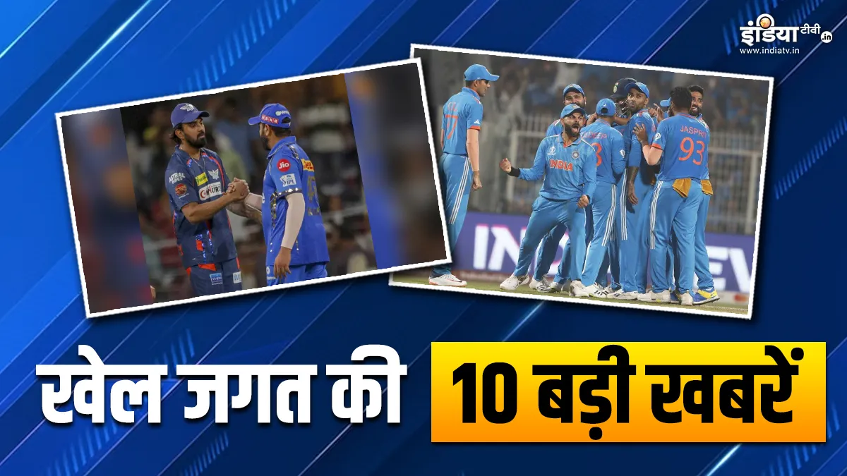 Sports Top 10 News: आईपीएल में आए दिन रोमांचक मुकाबले खेले जा रहे हैं। ऐसा ही एक रोमांचक मैच लखनऊ सुपर जायंट्स और मुंबई इंडियंस के बीच खेला गया। वहीं आईपीएल में आज यानी कि बुधवार को एक और आईपीएल मैच खेला जाएगा। जहां पंजाब किंग्स का सामना चेन्नई सुपर किंग्स से होगा। दूसरी ओर मंगलवार को टी20 वर्ल्ड कप के लिए भारतीय टीम के स्क्वाड का भी ऐलान कर दिया गया। ऐसे में आइए खेल जगत की 10 बड़ी खबरों पर एक साथ नजर डालते हैं।