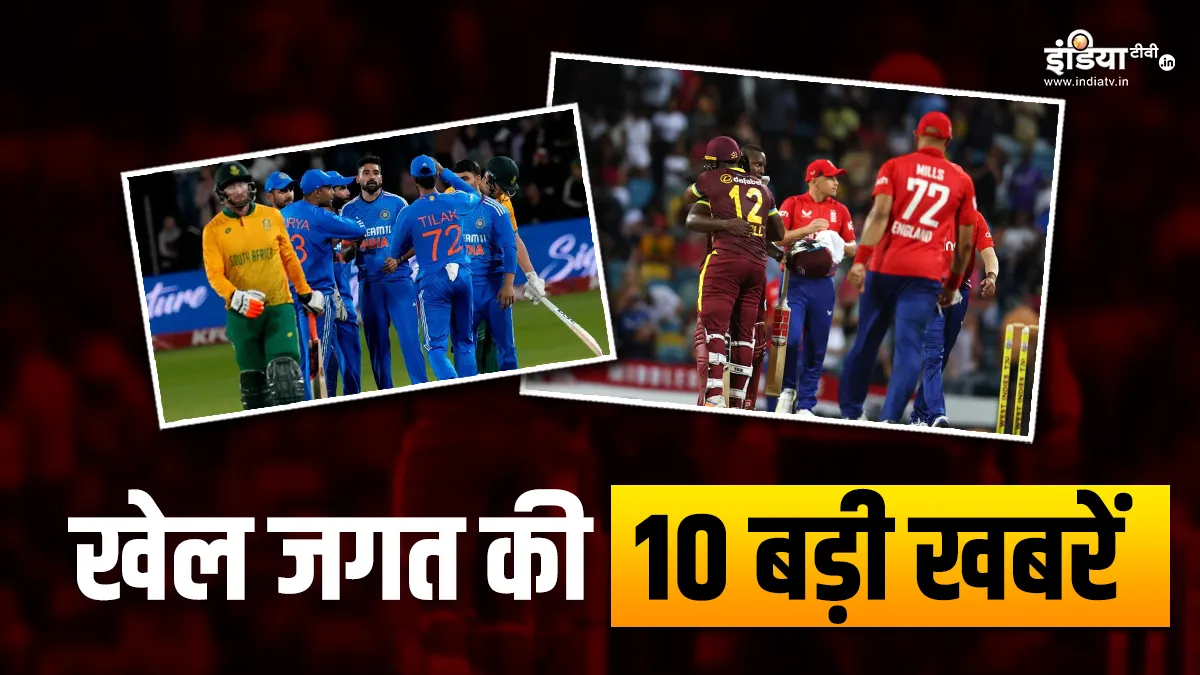 Sports Top 10: दुनिया भर में अलग-अलग देशों में क्रिकेट समेत कई अन्य खेल खेले जा रहे हैं। बात करें क्रिकेट के बारे में तो भारतीय टीम इस वक्त साउथ अफ्रीका के दौरे पर, वहीं इंग्लैंड की टीम वेस्टइंडीज में है। हर खेलों पर खेलप्रेमी एक साथ नजर नहीं रख सकते, ऐसे में आइए खेल जगत की 10 बड़ी खबरों पर एक साथ नजर डालते हैं।