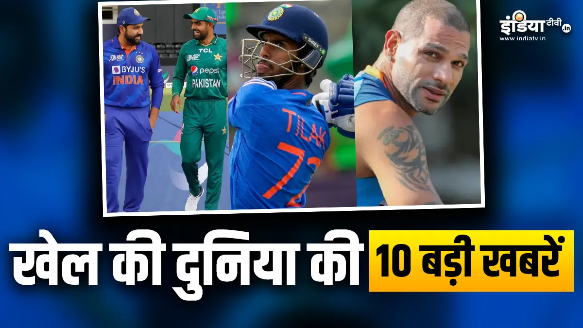 भारतीय क्रिकेट टीम इन दिनों आगामी एशिया कप और वनडे वर्ल्ड कप की तैयारियों में जुटी हुई है। ऐसे में लगातार वर्ल्ड कप और एशिया कप से जुड़ी खबरें सामने आ रही हैं। गुरुवार और शुक्रवार की सुबह भी कुछ ऐसा ही हुआ। आज टीम इंडिया एशियाई हॉकी चैंपियंस ट्रॉफी में जहां सेमीफाइनल में जापान का सामना करेगी। वहीं ला लीगा के एक इवेंट में रोहित शर्मा ने मीडिया से बात करते हुए काफी सुर्खियां बटोरीं। शिखर धवन का एक इंटरव्यू भी काफी वायरल हो रहा है जिसमें उन्होंने टीम इंडिया से बाहर होने पर हैरानी जताई। आइए जानते हैं खेल की दुनिया की ऐसी ही 10 बड़ी खबरें एकसाथ।