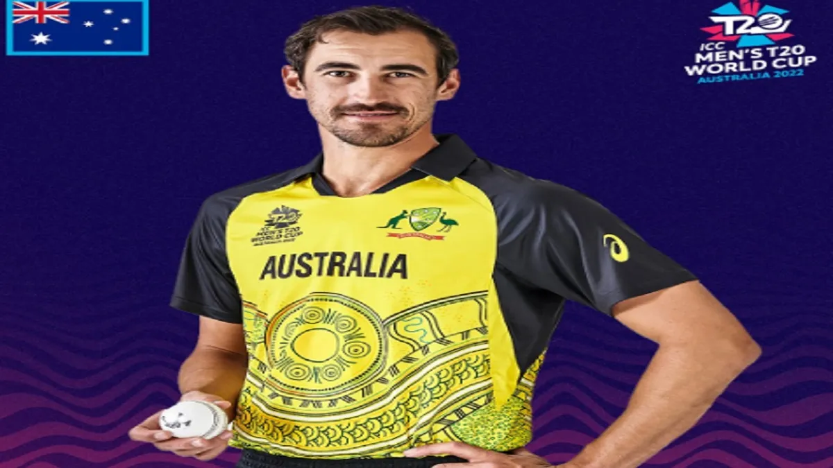 T20 World Cup 2022, Australia Jersey: ऑस्ट्रेलियाई क्रिकेट टीम ने आगामी टी20 वर्ल्ड कप के लिए अपनी नई जर्सी जारी कर दी है। गत चैंपियन टीम इस बार के वर्ल्ड कप में स्वेदशी थीम पर आधारित जर्सी पहनकर खिताब बचाने उतरेगी। क्रिकेट ऑस्ट्रेलिया की तरफ से जारी की गई जर्सी में कंधे पर काले जबकि टी-शर्ट के बीच में सुनहरे और पीले रंग की डिजाइन का इस्तेमाल हुआ है। वहीं पैंट का रंग पूरी तरह से काला है। ऑस्ट्रेलियाई टीम इस बार घरेलू सरजमीं पर आरोन फिंच की कप्तानी में इसी जर्सी में अपना खिताब बचाने के लिए मैदान पर जोर लगाएगी।