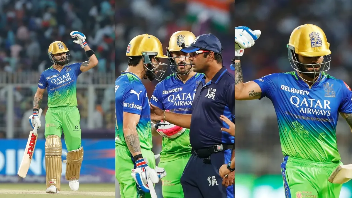 KKR vs RCB: आईपीएल में कोलकाता नाइट राइडर्स और रॉयल चैलेंजर्स बेंगलुरु के बीच मुकाबला खेला जा रहा है। इस मैच में आरसीबी के कप्तान फॉफ डु प्लेसिस ने टॉस जीतकर पहले गेंदबाजी करने का फैसला लिया। इसके बाद कोलकाता नाइट राइडर्स ने पहले बल्लेबाजी करते हुए 20 ओवर में 6 विकेट खोकर 222 रन बनाए। आरसीबी के सामने जीत के लिए काफी बड़ा लक्ष्य रखा गया। रनचेज के दौरान विराट कोहली काफी शानदार फॉर्म में नजर आ रहे थे, लेकिन वह 7 गेंदों पर 18 रन बनाकर आउट हो गए। विराट कोहली को आउट दिए जाने के बाद वह काफी नाराज नजर आए और गुस्से में उन्होंने कई गलत काम कर डाले।