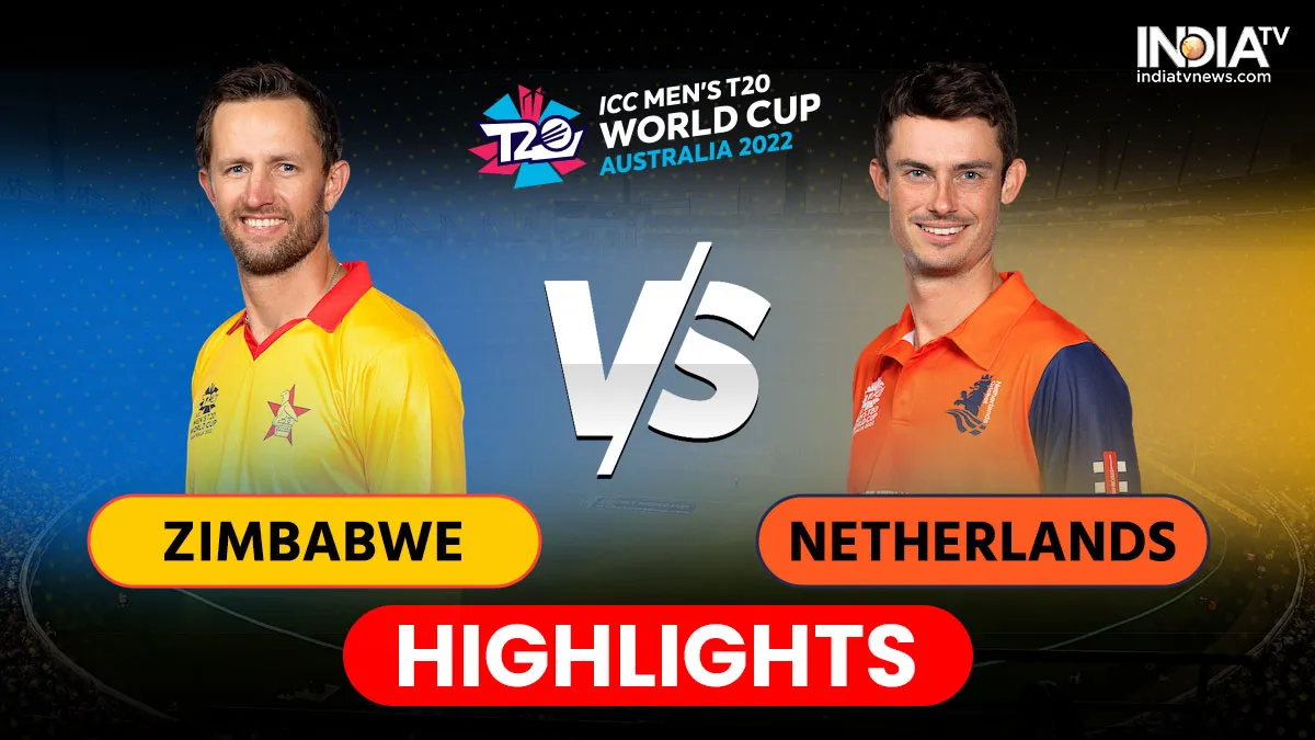 ZIM vs NED, T20WC HIGHLIGHTS: नीदरलैंड्स क्रिकेट टीम ने टी20 विश्व कप के सुपर 12 स्टेज की अपनी पहली जीत दर्ज कर ली है। गेंदबाजों के शानदार प्रदर्शन और मैक्स ओ'दाऊद की अर्धशतकीय पारी के दम पर नीदरलैंड्स ने जिम्बाब्वे को छह विकेट से हरा दिया है। नीदरलैंड्स की टीम ने जिम्बाब्वे के 118 रन के आसान लक्ष्य को पांच विकेट खोकर 18वें ओवर में हासिल कर लिया। बता दें कि इससे पहले टॉस जीतकर पहले बल्लेबाजी करते हुए जिम्बाब्वे की पूरी टीम 19.2 ओवर में ही सिमट गई थी। जिम्बाब्वे के लिए सिकंदर रजा ने सबसे ज्यादा 40 रन बनाए थे जबकि नीदरलैंड्स के लिए वैन मीकेरन तीन विकेट के साथ सबसे सफल गेंदबाज रहे।