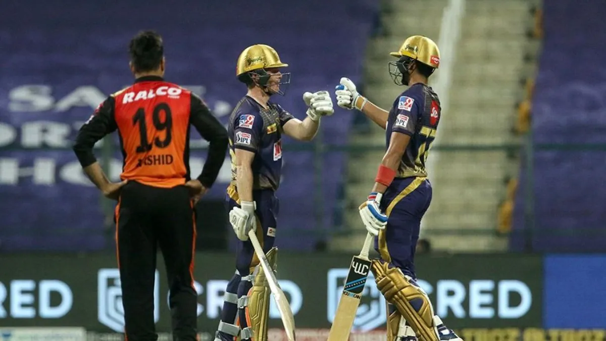 कोलकाता नाइट राइडर्स (प्लेइंग इलेवन) : राहुल त्रिपाठी, शुभमन गिल, नितीश राणा, दिनेश कार्तिक (w), इयोन मोर्गन (c), आंद्रे रसेल, पैट कमिंस, शिवम मावी, कुलदीप यादव, लॉकी फर्ग्यूसन, वरुण चक्रवर्ती।