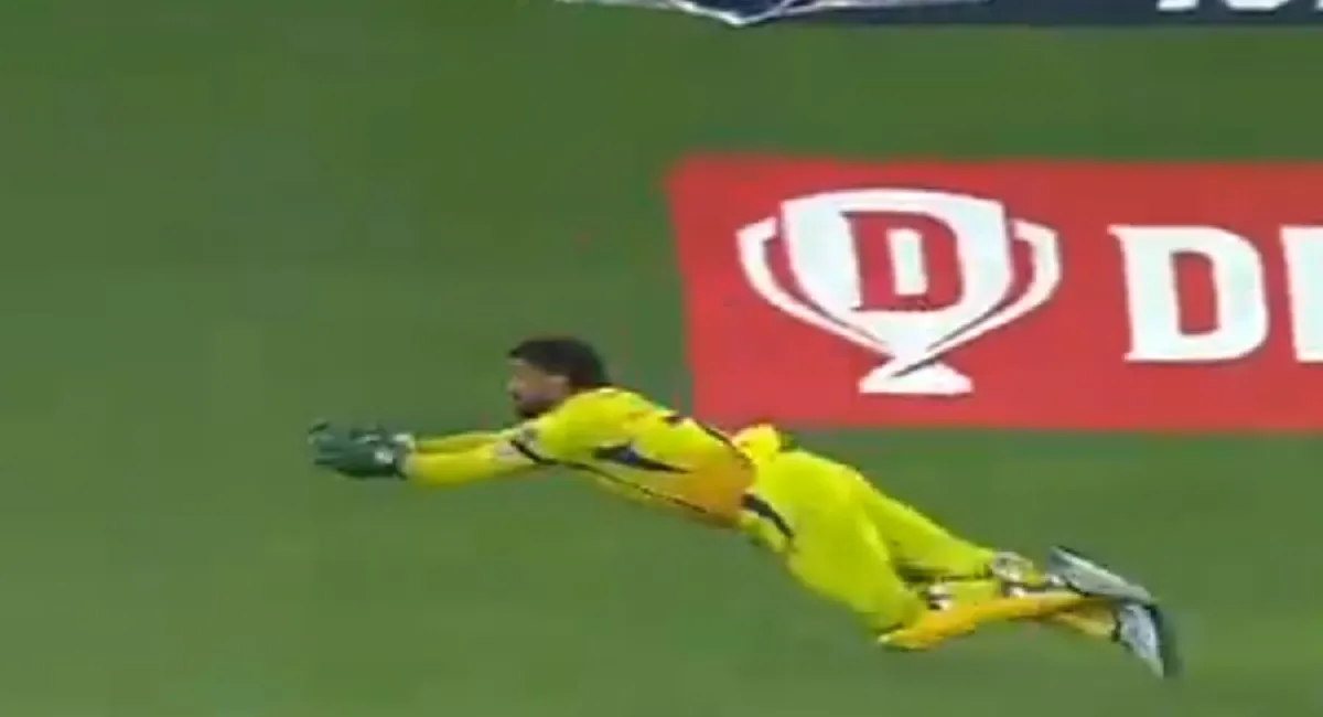 दिल्ली की पारी के अंतिम ओवरों में जब श्रेयस अय्यर (26) बड़ा शॉट लगाकर टीम के लिए रन जुटाने की कोशिश में लगे तभी उनका एक शॉट बल्ले का किनारा लेते हुए विकेट के पीछे गया लेकिन मुस्तैदी से पीछे खड़े धोनी ने हवा में लंबी छलांग लगाते हुए गेंद को अपने दस्ताने में जकड़ लिया।