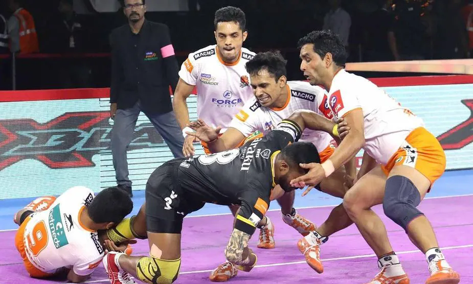 नई दिल्ली। पुनेरी पल्टन ने शुक्रवार को मनजीत और नितिन के दमदार प्रदर्शन के दम पर यहां त्यागराज स्टेडियम में खेले गए प्रो कबड्डी लीग (पीकेएल) के सातवें चरण के मैच में तेलुगू टाइटंस को सात अंकों के अंतर से हरा दिया। टाइटंस ने काफी कोशिश की लेकिन पल्टन की टीम 34-27 से मैच अपने नाम करने में कामयाब रही।