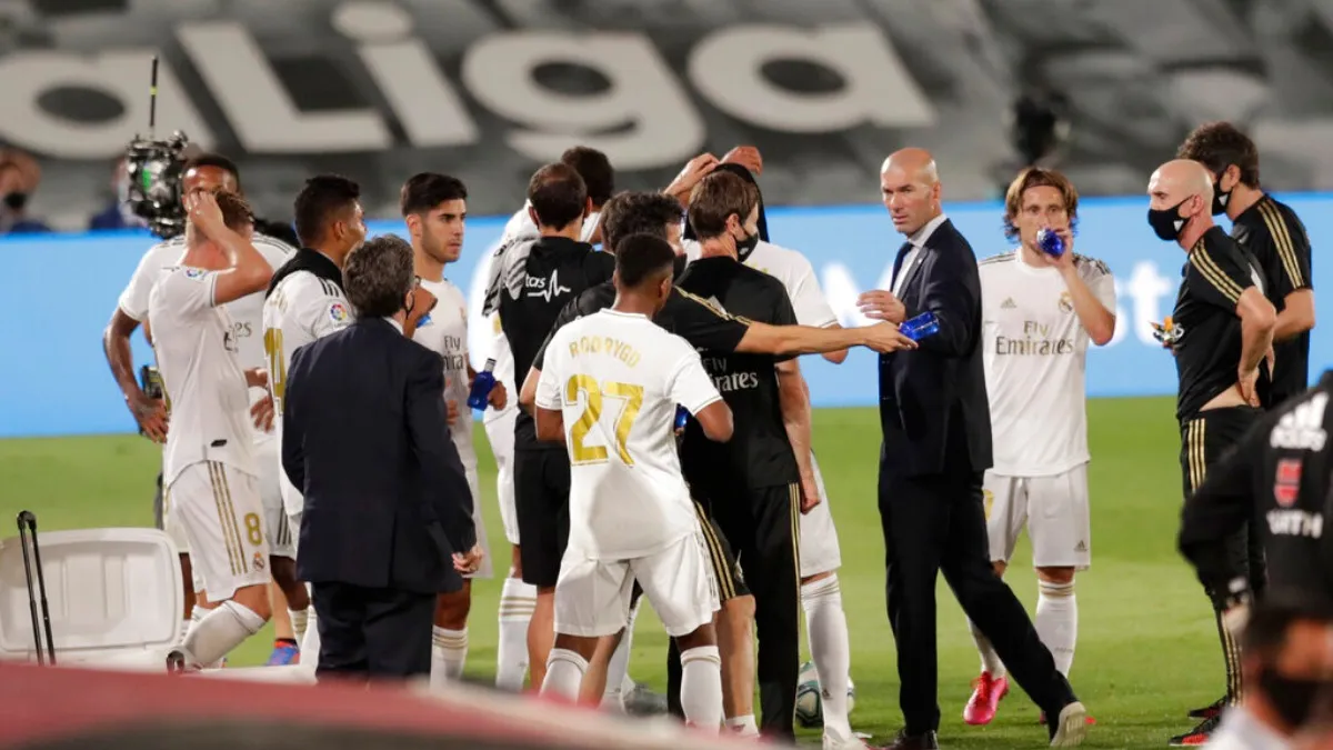 मैड्रिड| स्पेनिश लीग खिताब के बेहद करीब पहुंची रीयाल मैड्रिड की टीम ने चिर प्रतिद्वंद्वी बार्सीलोना से ला लीगा खिताब छीनने की ओर मजबूत कदम बढ़ा दिए हैं। कोरोना वायरस महामारी के कारण निलंबन के बाद जब से लीग बहाल हुई है तब से बार्सीलोना के प्रदर्शन में उतार-चढ़ाव देखने को मिला है जबकि रीयाल मैड्रिड ने अपने सभी मुकाबले जीते हैं। अब जब अंतिम दो दौर का खेल बाकी है तो उसने अपने निकटतम प्रतिद्वंद्वी पर चार अंक की बेहद महत्वपूर्ण बढ़त बना ली है।