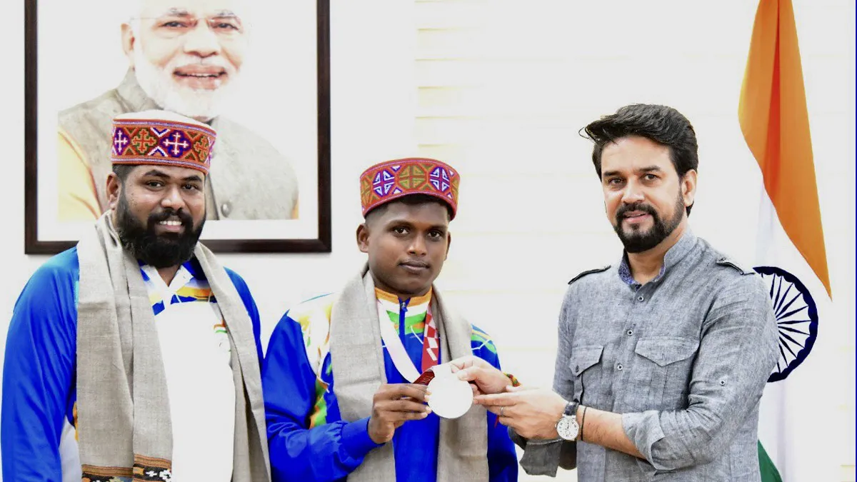 नई दिल्ली। खेल मंत्री अनुराग ठाकुर ने शनिवार को तोक्यो पैरालंपिक के रजत पदक विजेता ऊंची कूद के खिलाड़ी मरियप्पन थंगावेलु को सम्मानित किया, जो स्वर्ण नहीं जीत पाने से निराश थे। पांच साल पहले रियो ओलंपिक में स्वर्ण पदक जीतने वाले मरियप्पन ने इस बार टी42 वर्ग में 1.86 मीटर की सर्वश्रेष्ठ छलांग के साथ रजत पदक जीता। इस स्पर्धा में एक भारतीय, शरद कुमार ने 1.83 मीटर की सर्वश्रेष्ठ छलांग के साथ कांस्य पदक जीता।
