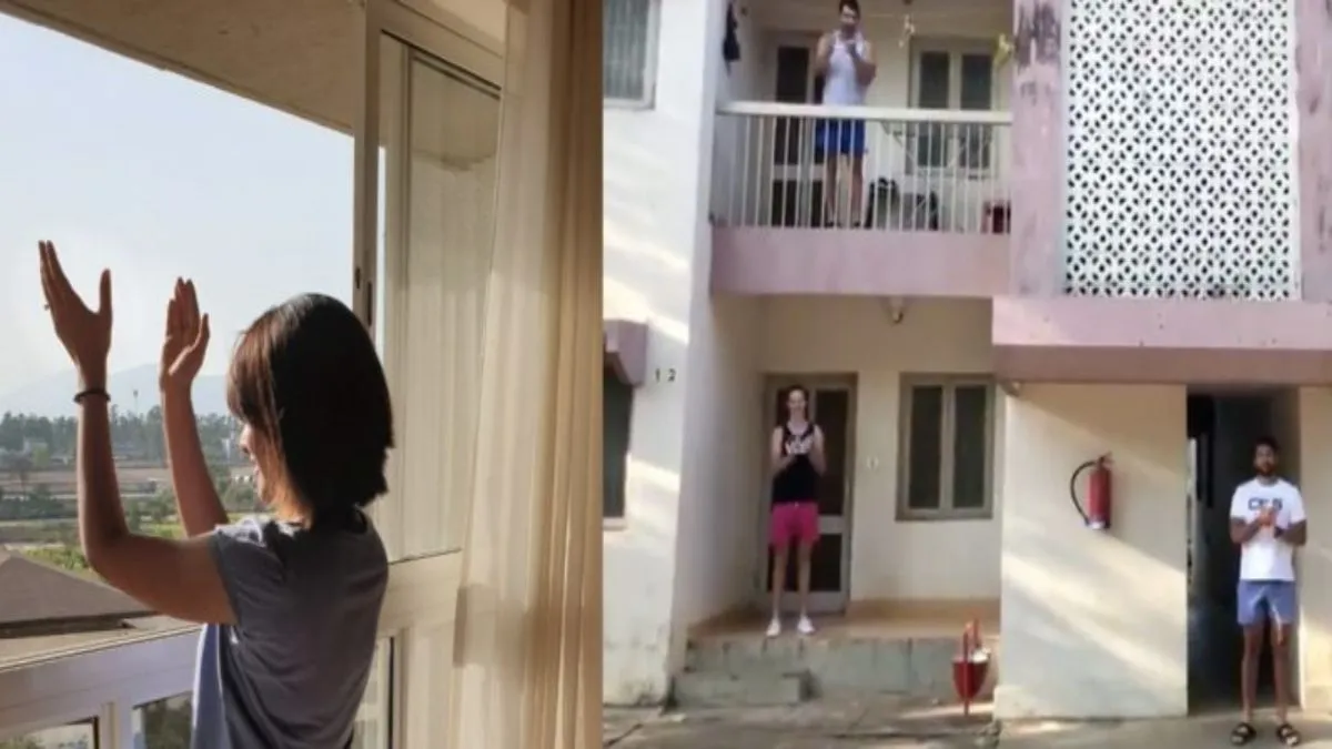 भारतीय महिला टेबल टेनिस की स्टार मनिका बत्रा ने भी अपने घर के बाहर बालकनी में निकल कर तालियाँ बजाई।