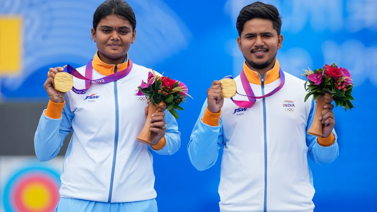 एशियाई खेल 2023: चीन के हांगझोउ में खेले जा रहे एशियन गेम्स में भारतीय एथलीटों ने इतिहास रच दिया। भारत ने इस साल एशियन गेम्स के इतिहास में पहली बार 100 मेडल के आंकड़े को पार किया। भारत ने टूर्नामेंट के 14वें यानी की आखिरी दिन ये कारनामा किया। इस दौरान भारत के दो एथलीट ऐसे रहे जिन्होंने अपने लिए तीन-तीन गोल्ड मेडल जीता। इस दोनों खिलाड़ियों ने आर्चरी में यह कारनामा किया। ज्योति सुरेखा और ओजस प्रवीण ने भारत के लिए यह गौरव हासिल किया है। इन दोनों ने सभी तीन स्पर्धाओं में स्वर्ण पदक जीते जिनमें उन्होंने भाग लिया।
