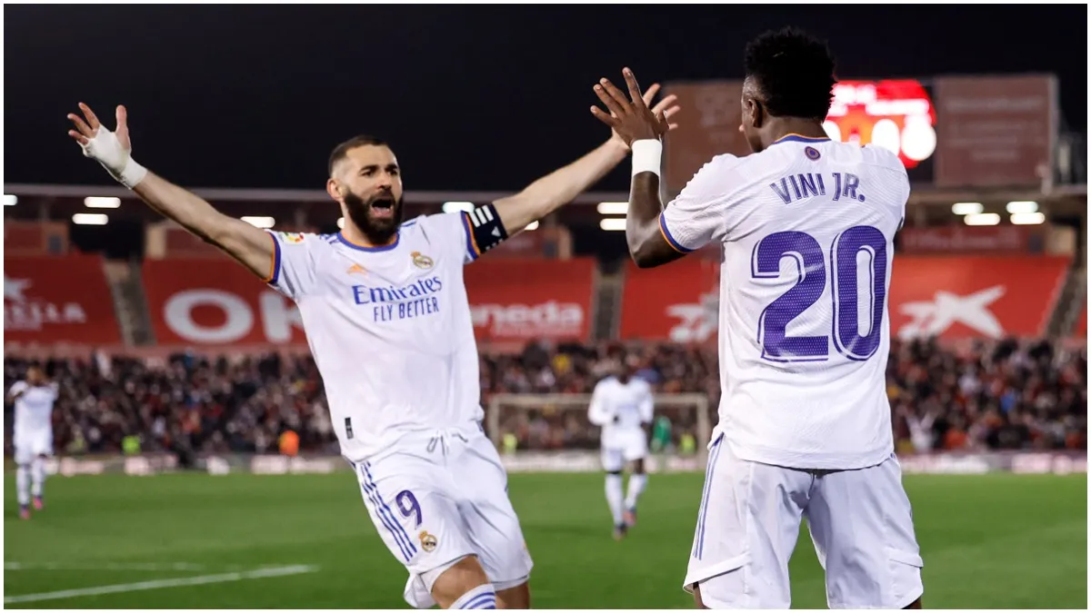 स्पेनिश फुटबॉल लीग ला लीगा के एक अहम मुकाबले में रियाल मैड्रिड की टीम ने मैल्लोर्का को 3-0 से हराकर प्वाइंट्स टेबल में अपनी बढ़त कायम रखी। इस मुकाबले में 34 बार की चैंपियन मैड्रिड की टीम के लिए करीम बेंजेमा ने 2 और विनिसियस जूनियर ने 1 गोल किया। शानदार फॉर्म में चल रहे बेंजेमा का यह एक हफ्ते में कुल पांचवा गोल है। इससे पहले उन्होंने पीएसजी के लिए चैंपियंस लीग मुकाबले में हैट्रिक लगाई थी।