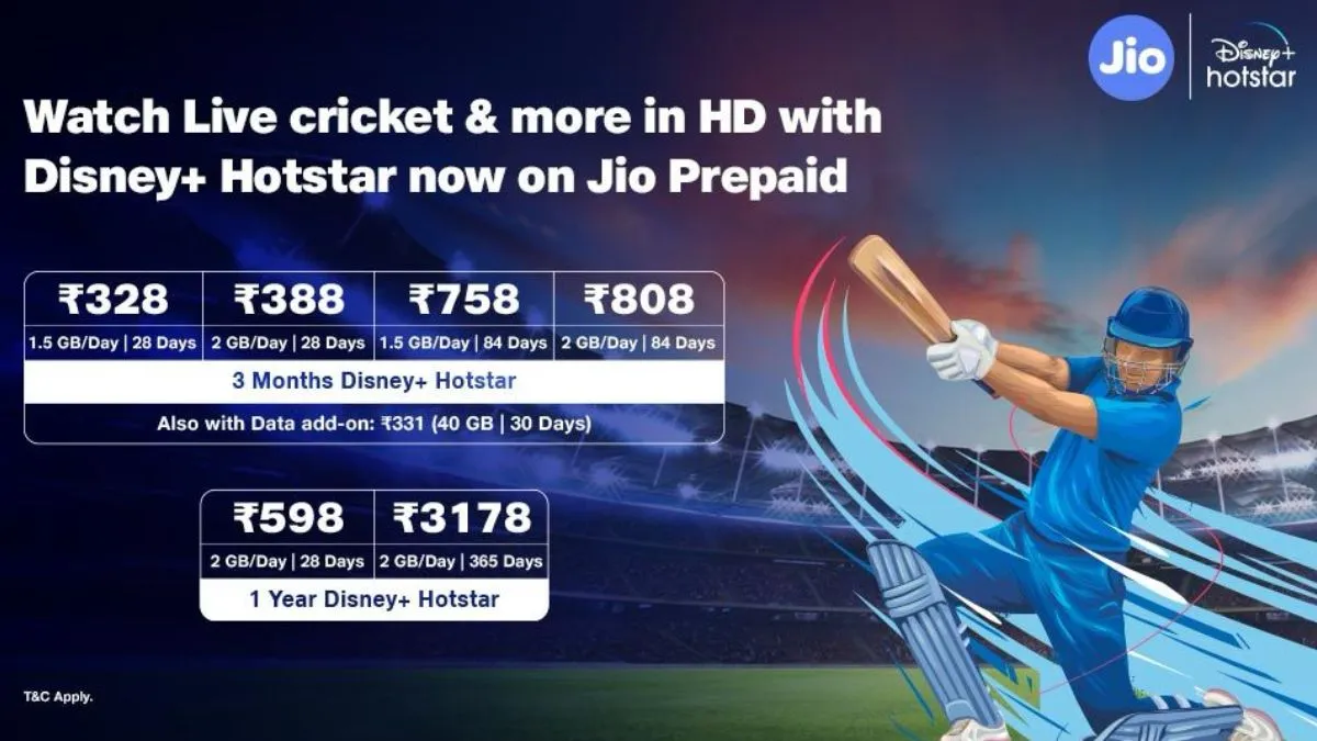 अगर आप क्रिकेट मैच देखने के शौकीन हैं और इंडियन प्लेयर को क्रिकेट के महाकुंभ में धमाल मचाते हुए देखना चाहते हैं तो आप जियो (Jio Cricket hotstar Plans) के इस प्लान्स को ले सकते हैं। अगर आप अपने स्मार्टफोन में फ्री में मैच देखना चाहते हैं तो जियो के ये प्लान्स काफी फायदेमंद साबित होने वाले हैं क्योंकि कंपनी ने इसमें हाईस्पीड इंटरनेट की भी सुविधा दे रही है।