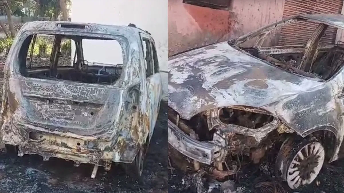 गड़ियों के साथ दो खोखे भी जले
