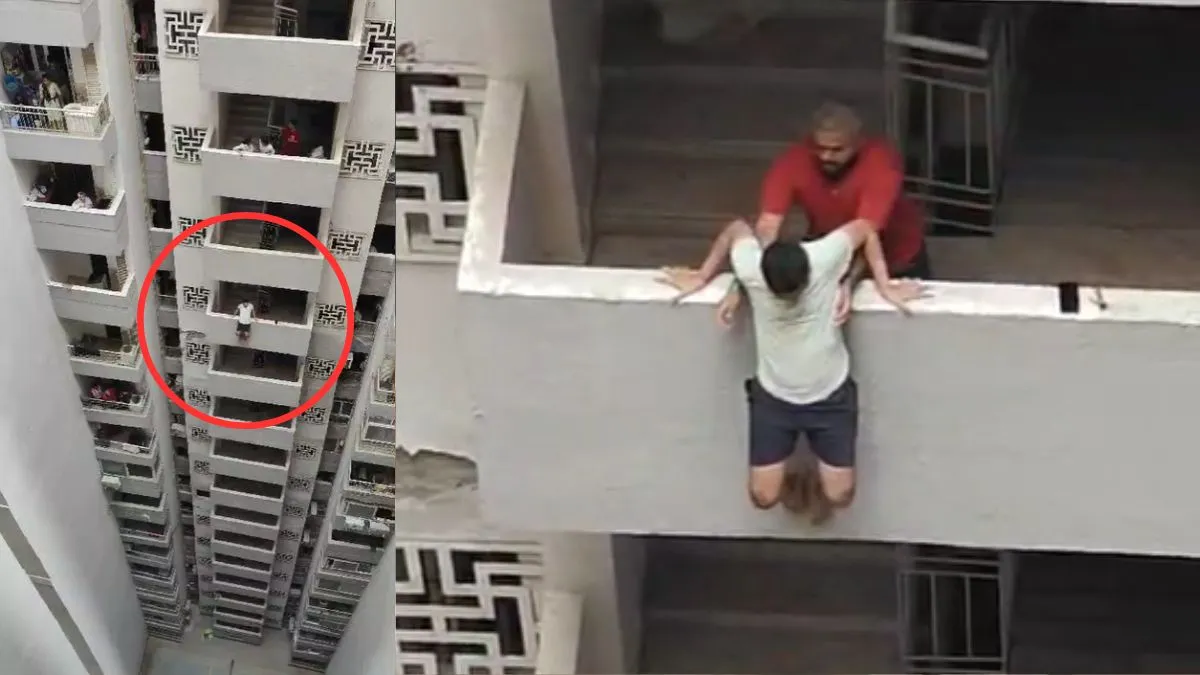 दरअसल, पूरा मामला नोएडा के थाना सेक्टर 113 क्षेत्र का बताया जा रहा है। यहां सुबह करीब 10:30 बजे एक 21 वर्षीय युवक ने ऊंची बिल्डिंग के 14वें फ्लोर से आत्महत्या करने का प्रयास किया। इस दौरान टावर में रह रहे लोगों ने जैसे ही उस लड़के को लटका हुआ देखा तो उन्होंने शोर मचाना शुरू कर दिया। शोर सुनकर वहां पर मौजूद दो लोग सीढ़ियों के सहारे ऊपर पहुंचे। इसके बाद दोनों ने उस युवक को पकड़ लिया और फिर ऊपर खींचकर उसकी जान बचा ली।