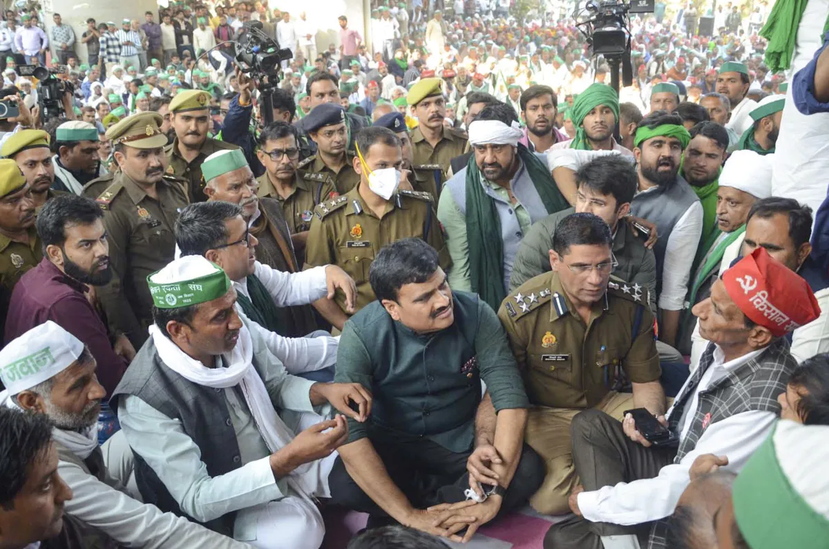 कई जिलों के किसान दे रहे थे धरना