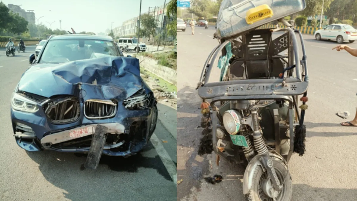 Image Source : IANS बीएमडब्ल्यू कार ने ई-रिक्शा को मारी टक्कर