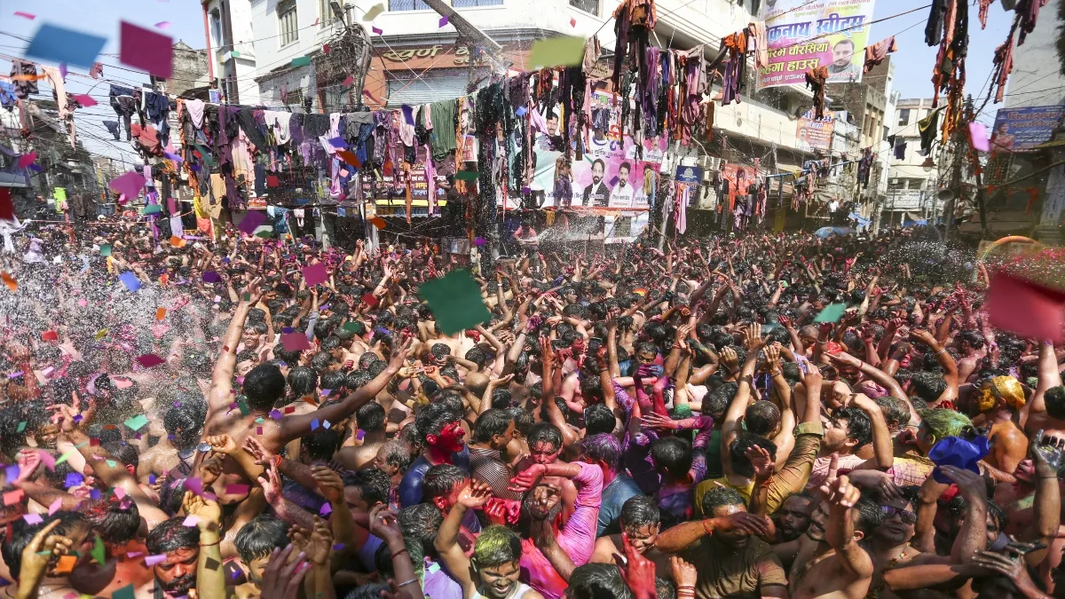 Image Source : PTIप्रयागराज की कपड़ा फाड़ होली