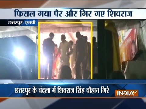 मध्य प्रदेश में जन आशीर्वाद यात्रा के दौरान मंच से फिसल कर गिरे शिवराज सिंह चौहान