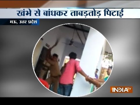 उत्तर प्रदेश के मऊ में रेप के आरोपी की दरोगा ने बेल्ट से बुरी तरह पिटाई की।