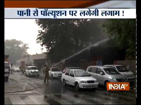 Fire services sprinkle water on trees near Delhi Secretariat due to rising air pollution