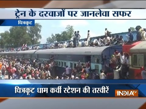 चित्रकूट के अमावस्या मेले में पहुंचने के लिए ट्रेन की छत पर यात्रा करते नज़र आये यात्री