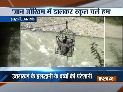 उत्तराखंड के हल्दवानी में ट्रॉली पर झूल रही बच्चों की जिंदगी, जान हथेली पर रख जा रहे स्कूल