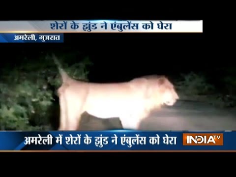 - गुजरात के अमरेली में शेरों ने एम्बुलेंस को घेरा, महिला ने एम्बुलेंस में दिया बच्चे को जन्म