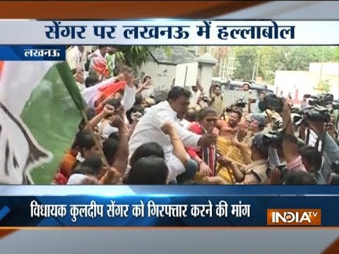 लखनऊ में कांग्रेस की महिला विंग का बीजेपी विधायक कुलदीप सिंह सेंगर के खिलाफ प्रदर्शन