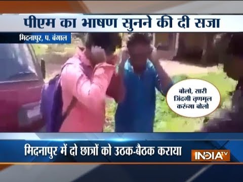 छात्रों को पीएम का भाषण सुनने की सजा देने का ये वीडियो 16 जुलाई का है। दोनों भाषण सुनकर लौट रहे थे तभी केशपुर में ये टीएमसी कार्यकर्ताओं के हत्थे चढ़ गए। बताया जा रहा है कि टीएमसी कार्यकर्ताओं ने दोनों छात्रों को 50 बार उठक-बैठक करवाया।